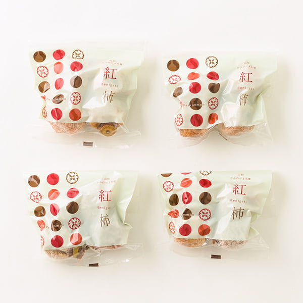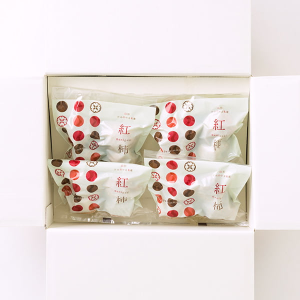 4個づつ個包装された紅干し柿×4袋セットの商品です。ギフトにはもちろん、ちょっとした手土産やお裾分けにも最適です。