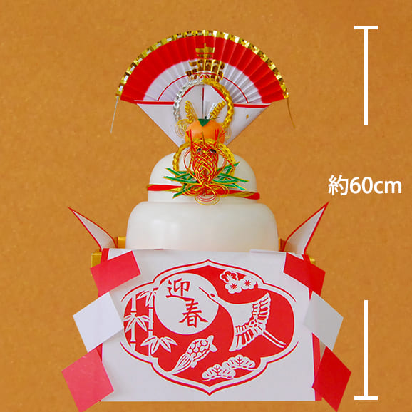 お飾りを含めた鏡餅全体の大きさは、なんと高さ約60cm、幅34cmと超特大サイズです。