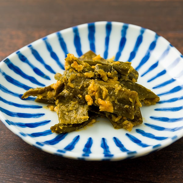 品種を限定した細くやわらかい青唐辛子だけを、最上級のこうじみそで何度もつけかえながら仕上げたみそ漬けです。焼き肉の付け合わせにもよく合います。袋に残った味噌もとってもおいしいので、是非ご飯やおにぎりにつけてお召し上がりください。