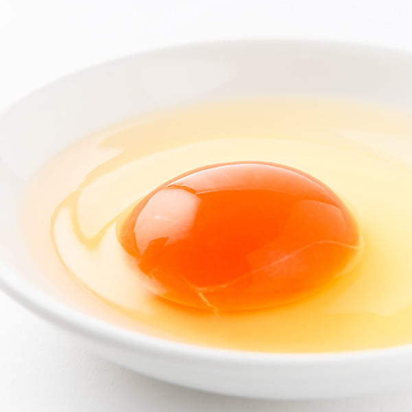 野菜に含まれるβ-カロチンやトマトのリコピンと同じ仲間で、ビタミンEの1000倍もの強力な抗酸化性が確認されている成分です。このアスタキサンチンを豊富に含んだ飼料を与えた卵は、健康的で鮮やかな卵黄色になります。
