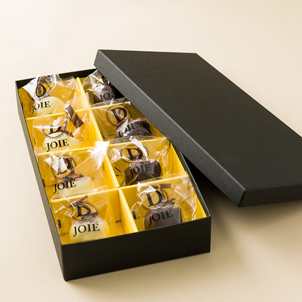 商品が出来たきっかけは、D.Joieさんとバレンタイン商材について打ち合わせした時でした。山形らしい商品を作りたいという話になり、何度も話し合いと試行錯誤を重ねた上で紅柿ショコラが誕生しました。そして更に、うまいずスタッフの間で ”バレンタイン以外の贈り物にも使えるバレンタイン商材を販売してはどうか“という案が上がり、女性から男性に贈るだけではなく、さまざまな場面で使えるような商品にしました。オリジナルの10種類から選べるのしもお付け出来るので、色々カスタマイズしてみてもらいたいです。