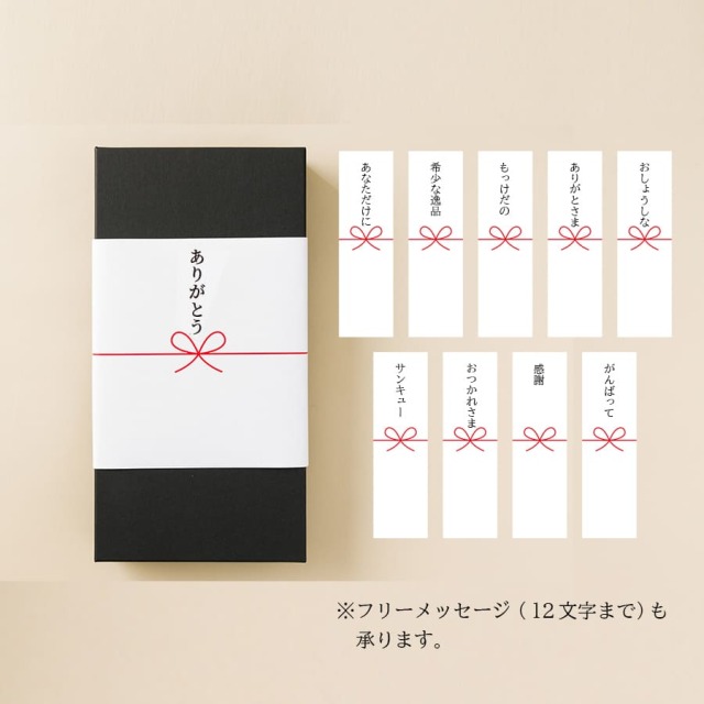 また、ご自分の言葉で伝えたい方には、フリーメッセージのし(12文字まで)にも対応いたしますので、ぜひ、あなたの気持ちにぴったりの言葉を添えてみてくださいね。※フリーメッセージのしをご希望の方は、「フリーメッセージ」を選択の上、ショッピングカート内のコメント欄に12文字以内でご記入ください。