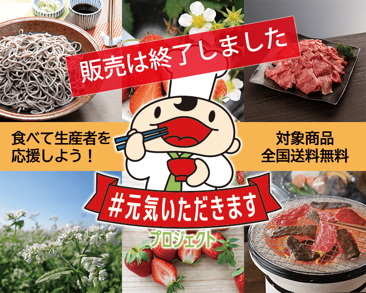 ![]() [ご確認ください] 「#元気いただきますプロジェクト」対象商品の送料無料は2/1(月)午前10:00ご注文分までとなります。 また、2/7(日)までにお届けした分が対象となります。 2/8以降のお届けをご希望の場合は送料無料対象外となりますのでご注意ください。 コロナで出荷が停滞した食材販売を支援しています! 対象品目のご注文送料無料! 山形うまいずでは、新型コロナウイルスの感染拡大の影響を受け、在庫の滞留や売上げの減少などが顕著な食材の販売促進を支援するため、対象品目の送料を補助する事業※に参加しています。 | |