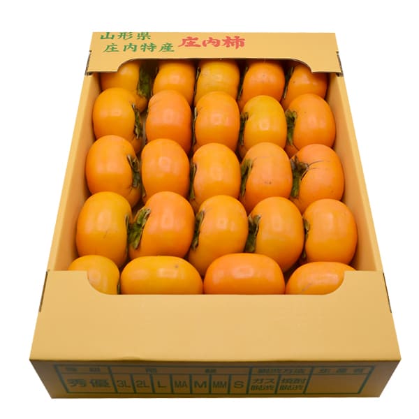 | 内容量 | 庄内柿 L〜2Lサイズ×5kg箱満杯詰(24玉〜31玉) 箱サイズ:45x30.5x8.5cm ※満杯詰のため、隙間なく箱詰めするために1〜2玉小さめの玉が入る場合がございます。 ※お届けする柿は《ご家庭用》の訳あり商品です。柿の表皮に傷や脱渋焼けがあるため、正規品では出荷出来ないものとなりますので、ご了承のうえご注文ください。 ※庄内柿は種なしの品種ですが、稀に種が入る場合がございます。お召し上がりの際はお気を付けください。 |