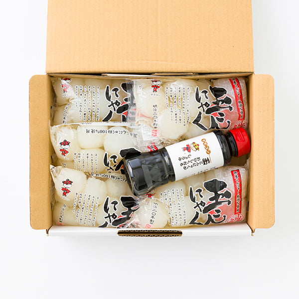 | 内容量 | 250g(充填時)×5袋、玉こんにゃくがおいしくなるしょうゆ×1本 |
