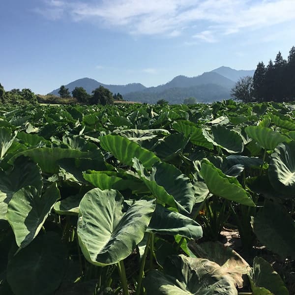 村岡商店の里芋は、栄養分をたっぷり含んだ黒ぼく土(火山灰土と微生物によって分解された有機物をたっぷり含む黒褐色の土)で形成された土壌と、山から流れ込む綺麗な水によって栽培されています。