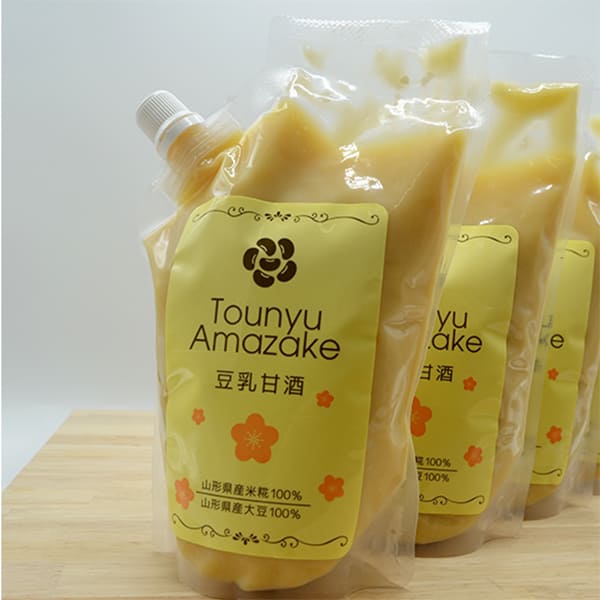 ![]() ┃豆乳を米麹で発酵させて作ったこだわりの豆乳甘酒 住吉屋の「豆乳甘酒」は、山形県産の大豆と米(米麹)のみを材料にして作られた甘酒飲料です。この、こだわりの美味しい甘酒が完成するまで、開発に数年かけた自信作です。 ![]() ![]() 住吉屋の豆乳は、大豆表面の皮を取り除いてから豆を水に浸す独自製法のため、皮に由来するえぐみが少なく、澄んだ味わいの豆乳ができます。また、豆乳づくりに使用する水にこだわり、山形を代表する銘水である月山水(がっさんすい)を地下から汲みあげています。さらに、大豆を加熱する際に生じる泡を消すためや食感を良くするために使われる添加物である消泡剤を使わず、職人の技術力によって安心安全で美味しい豆乳に仕上げています。 ![]() ![]() 豆乳甘酒は、通常の甘酒と比べるとかなり甘さ控えめ。大豆の風味と米麹のほんのりとした甘みで、すっきりとした味わいです。冷やして飲むと大豆の風味がほんのり香るさらりとした飲み口で、温めると大豆の香りが豊かに感じられますので、お好みの飲み方でお楽しみ下さい。 アルコール不使用ですので、お子様も安心してお飲みいただけます。 ┃山形を代表する豆腐製造メーカー「住吉屋」 山形県寒河江市に本社を構える「住吉屋」は、地元山形で豆腐といえば住吉屋、というほどよく知られている食品製造メーカーです。昭和7年の創業以来、豆腐をはじめとして、油揚げ、がんもどき、厚揚げ、玉こんにゃくなど、普段の食卓に欠かすことのできない食品を数多く製造し続けて今に至ります。 ![]() ![]() 住吉屋では、製造ラインをオート―メーション化しながらも、要所要所では熟練の職人による手作業を取り入れ、昔ながらの味を大切に守っています。 ![]() ![]() [住吉屋のこだわり] ![]() ![]() また、住吉屋は製造だけでなく、小売りにも力を入れています。本社工場の隣にある直営店とうふ工房「清流庵」では、こだわりの豆腐・豆乳などの住吉屋の主力商品はもちろんのこと、大豆を使ったオリジナルの和菓子や、豆腐ソフトクリーム、豆腐ドーナツなども販売しており、さまざまな大豆の美味しさが楽しめる商品が揃い、地元を中心としたお客様から好評を博しています。 ![]() ![]() 材料にこだわり、職人の技を大切にしながら住吉屋が研究を重ねて作り上げた「豆乳甘酒」をぜひお楽しみください。 |