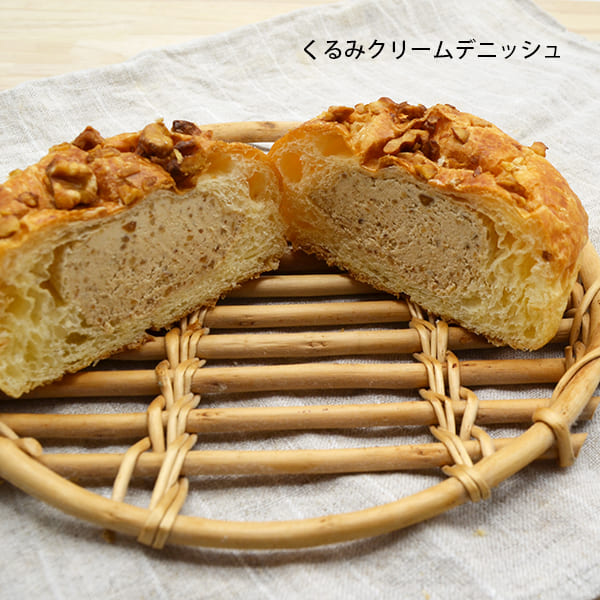 ごまの香ばしい香りとホイップクリームがマッチしています。 ![]() くるみクリームデニッシュ(1個) 生のくるみとローストしたくるみをミックスしたくるみクリームが絶品!くるみの香りが口の中いっぱいに広がる、贅沢な味わいです。 パンの生地はデニッシュタイプでふわりとした食感です。 ![]() パティシエール(ホイップクリーム×カスタードクリーム)(1個) パティシエールとはカスタードクリームのこと。クレーム・パティシエールとも呼ばれ、フランス語で「お菓子屋さんのクリーム」の意味を持ちます。 ![]() ┃大吟醸月山丸あんぱんは2種類の味わい 山形の歴史ある酒蔵「和田酒造」で不動の人気を誇る「大吟醸月山丸(がっさんまる)※」の酒粕から酒種を起こしたあんぱんです。 ![]() 酒種あんぱん(1本入) 定番のあんぱんには、北海道産の低糖あんこを使用し、生地に練りこんで焼き上げています。甘さは控えめに仕上げ、アクセントにくるみを加えています。 ![]() 酒種ずんだあんぱん(1本入) もう1種類は山形ならではの「ずんだ餡」。山形県庄内地方名産のだだちゃ豆と秘伝豆をミックスしたずんだです。こちらも甘さを控えめに仕上げました。 ![]() どちらも甘さ控えめですので、おやつにはもちろん、軽食に、お食事パンにもおすすめです。 ┃ボー・ションドブレとは ボー・ションドブレは、山形市松栄(山形店)と、山形県河北町(本店/おかしのくに)に店舗を構えるパン屋です。2店舗を運営している森谷製パンは、明治中期の創業で120年以上も続いてきたパン製造会社です。 ![]() ![]() 代表の森谷さんは、ご自身もパン職人として40年以上のキャリアを持ち、今でも毎日パンを焼き続け、山形市内で「ボー・ションドブレ」、河北町内にて「おかしのくに」の2店舗を運営しています。 ”美味しいパンをお客様に提供して笑顔になってもらいたい” ”わくわくするようなパンを作り、お客様に感動と喜びを伝えたい” という想いのもと、子どもから年配の方まで食べていただけるパン作りを目指し、毎日パンを焼き続けています。また、吟味した材料と美味しい水を用い、手間を惜しまず、美味しいと思ったものは何でも柔軟に取り入れながら、新しい味にも挑戦し続けています。
