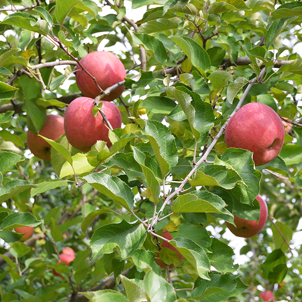 2004年にはエコファーマー認定を取得し(さくらんぼ、洋梨、りんご)、化学肥料に頼らず、りんごに適した量の自家製肥料を使用しています。 自然のもので作り上げた畑の土は、空気を含んでふかふか。佐藤果樹園の自慢の土です。また、木と木の間隔を広くあけることで、葉が太陽の光を充分あびることができ、さらに土からの栄養分が1本1本の樹にゆき渡ります。基本的に除草剤などは使わず、刈り取った雑草を土へ還元する草生栽培をおこなっています。このように、さまざまな工夫を凝らし、手間暇をかけてりんごの栽培をおこなっています。