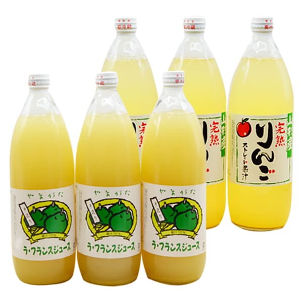 厳選ふじりんごジュース・ラフランスジュース各3本入(1L×計6本)