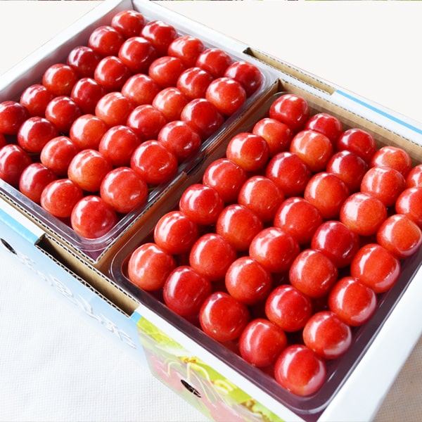 こちらの商品は、Lサイズ以上の粒を選果した後、1粒1粒ていねいに手作業でさくらんぼの実を並べて詰めています。美しく並べられた真っ赤なさくらんぼは、ご贈答の品として最適です。ぜひ本場山形の佐藤錦を大切な方への贈り物にどうぞ。
