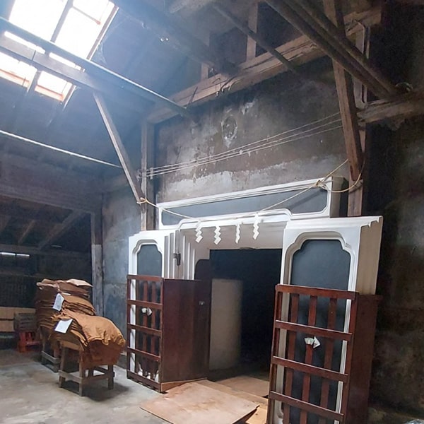 情緒あふれる外観の工場は、見学ができるようになっており、全国からたくさんの人が訪れています。心落ち着くようなもろみの香りが漂い、随所に社長手作りの素敵なオブジェや間接照明が置かれ、ノスタルジックな雰囲気に包まれています。