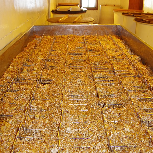 ハナブサ醤油の製造方法は、あえて機械化せず昭和40年代から変わらない製法で伝統の味を守り続けています。醤油、味噌づくりの工程は、そのほとんどが職人による手作業。さらに醤油の熟成には1年以上、赤味噌の熟成には2年以上ゆっくりと時間をかけて行っています。