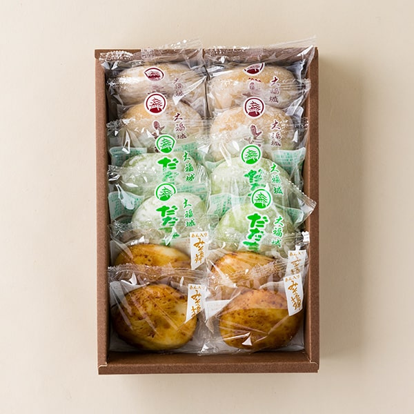 | 内容量 | とちもち×4個、みそっ娘餅×4個、だだちゃ大福×4個 化粧箱入り |