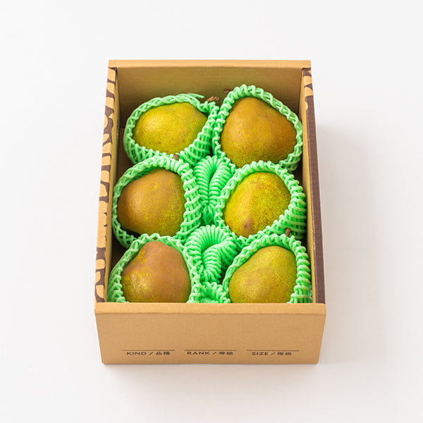 洋梨には様々な品種があり、またそのサイズによって、食感と甘みが異なります。大玉は大きくて食べ応えがある一方、追熟後の味にバラつきがある傾向があるため、食感、糖度が最も丁度良い「中玉」の栽培にこだわっています。