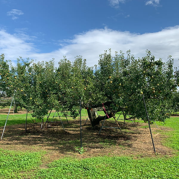 アンスリーファームでは、量より質にこだわった洋梨ラ・フランスの栽培をおこなっています。木に実らせる数が多すぎると、収穫量は増えるものの、小玉で生育のよくない洋梨になってしまうからです。そのため、生育状況を見ながら3回ものふるいにかけ、木に生らせる実を厳選しています。