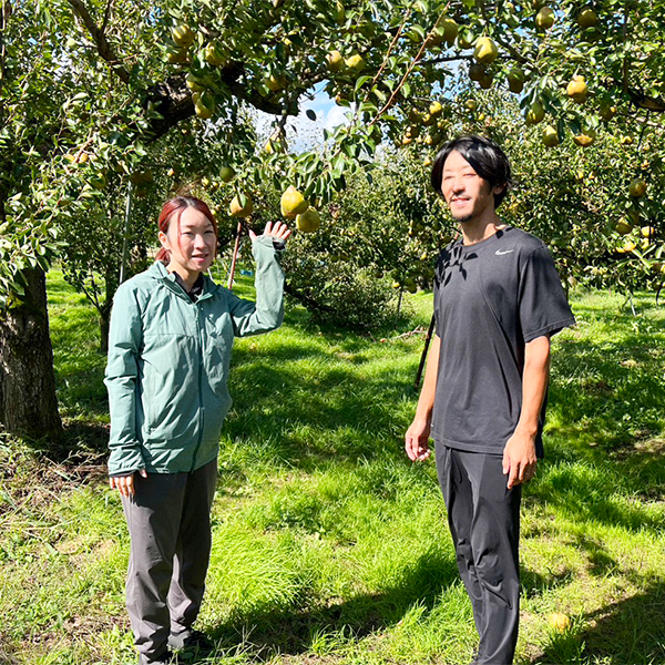 山形県東根市で果樹栽培を営むひかり農園の阿部さんご夫婦。おじいさまの代から続く果樹農家の3代目として、2018年に就農されました。さくらんぼ、桃、ラ・フランスをはじめとする様々な洋梨、りんごなど、四季折々の果物を丹精込めて育てています。