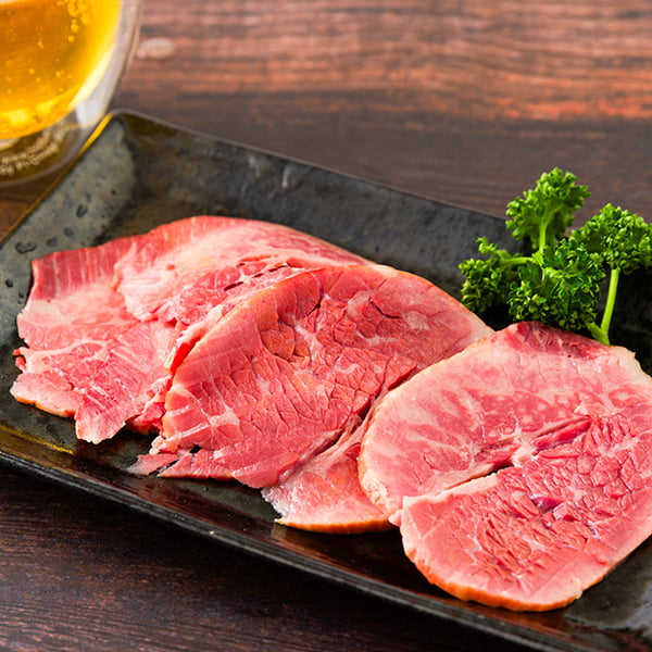 牛ハムは、ぜひ加熱をせずに、お好みの厚さに切ってそのままお召し上がりください。しっとりとした食感と牛肉の旨み、口どけの良い脂の旨みが堪能できます。また、お好みでわさびを付けても牛ハムの旨みが際立ちおすすめです。