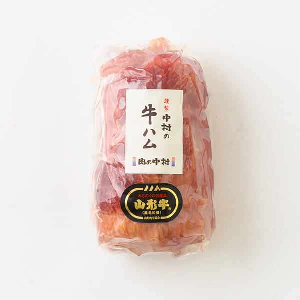 肉の中村の牛ハムは、山形牛だけを使用し、肉本来の味を引き出すために昔からの製法で熟成させ、手造りレンガの釜で桜の原木を使って燻製した、手間暇かけた逸品です。