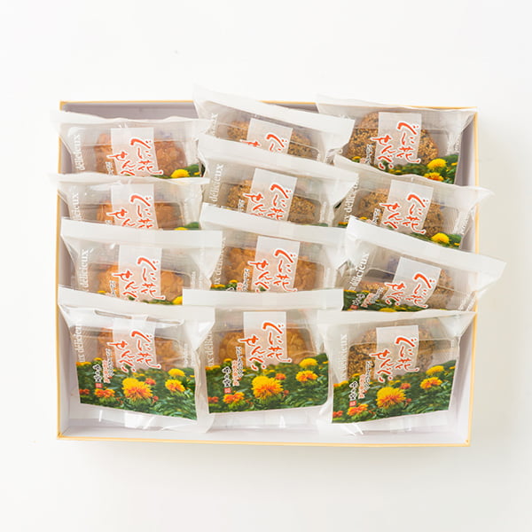 質の高いバターをたっぷりと使用し、アーモンドやごまの素材の味わいを大切にしながら、山形県の花である紅花を美しくトッピング。 見た目の華やかさと味わいの豊かさ、そして食感の楽しさすべてにこだわり抜いた、本物志向の方にこそ味わっていただきたい逸品です。