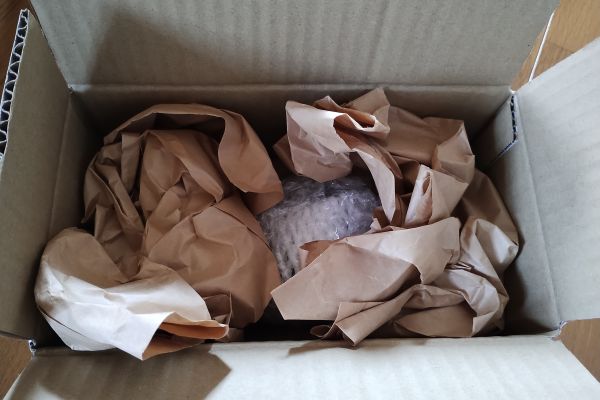 こちらは常温便で届きました。箱を開けるとガーリックオイルが一瓶。しっかりと梱包されているので、配送途中に割れる心配がなく安心です。