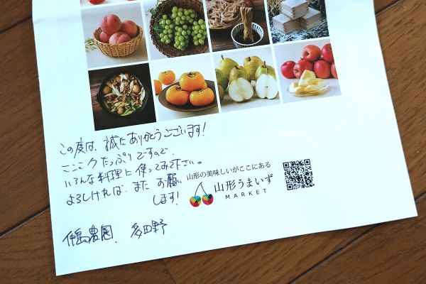 そして、生産者さんから直筆のメッセージ入り。温かさが伝わってきます。