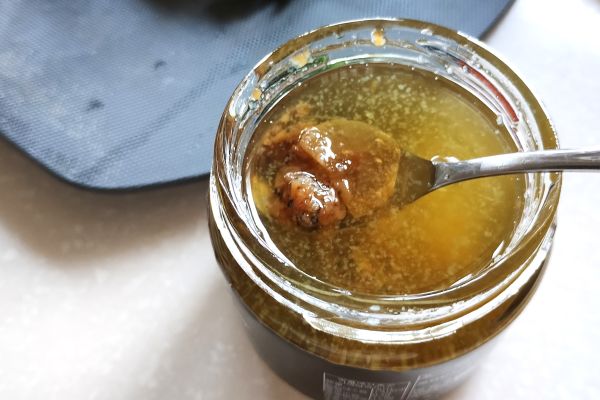 瓶の蓋を開けると真空状態だったニンニクの香りが一気に広がります。すりおろし、みじん切り、粗切り、3種類にカットされたにんにくが入っていて、一目見て大量のにんにくが詰め込まれているのがわかります。